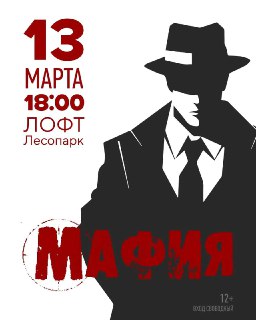 Никакой мистики — только чистый блеф, интриги и живое общение. В эту пятницу, 13 марта, в 18:00 встречаемся в лофте на классическую мафию.