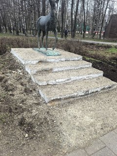 Помните, как пафосно нам презентовали «сюрприз» на месте старого оленя? Не прошло и года, а новый постамент уже всё — начал активно рассыпаться.